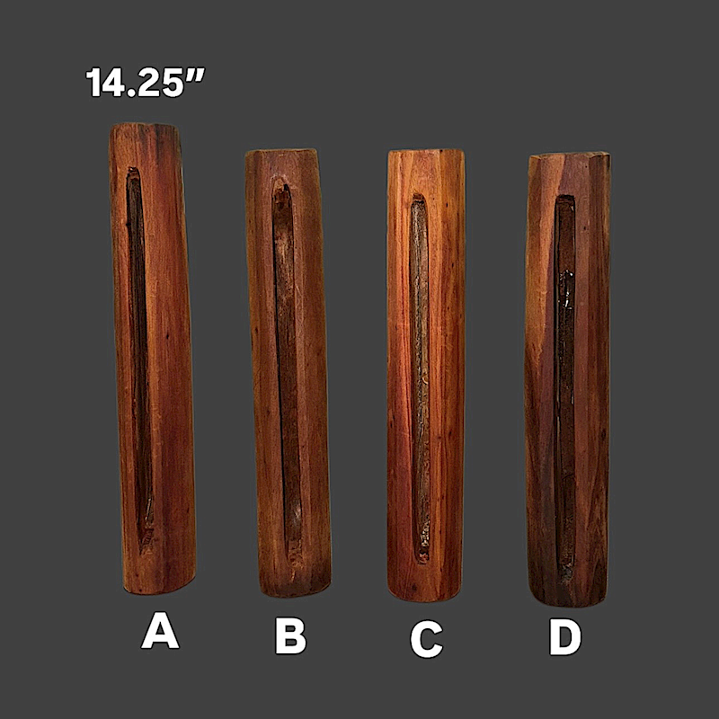 These are all hand made in Tahiti. They are made of Milo wood by Chief Miko Krainer and can be drummed from both sides.