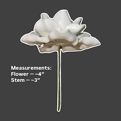 A soft, lifelike gardenia pick with a ~4-inch creamy white flower and a ~3-inch stem—perfect for hair, hula wear, weddings, crafts, and elegant tropical décor.