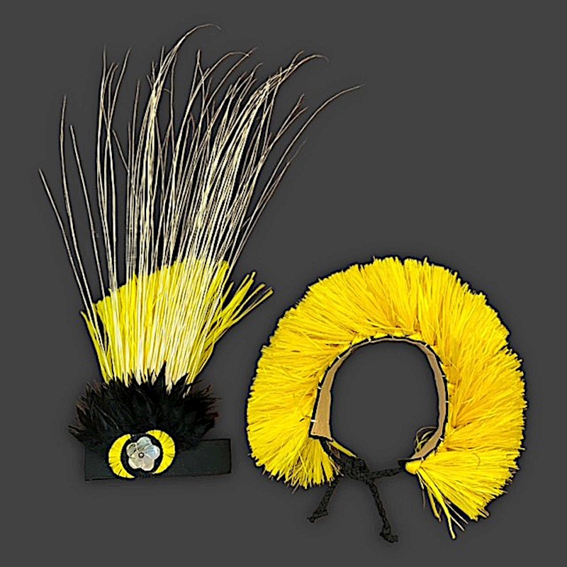 ONLY ONE AVAILABLE - SOLD AS A BUNDLE!!!! Small side headpiece with yellow & black accent, niau and a velcro closure. Fits all head sizes. Hipband with tie closure. Fits between 33"-37".