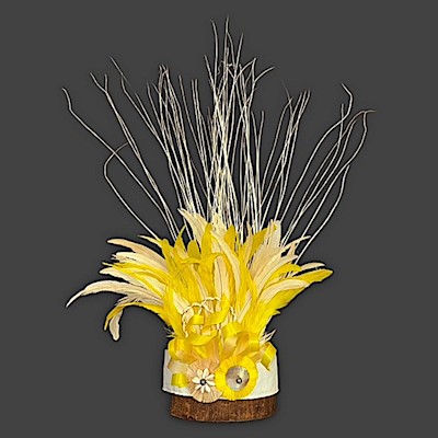 ONLY ONE AVAILABLE - SOLD AS A BUNDLE!!!! Yellow & Natural Bundle with 33" Hipband & (Side) Princess Otea Headpiece SAVE $$$ WHEN YOU BUY AS A SET. Normal price for 34" Hipband: $155 & (Side) Princess Otea Headpiece: $115