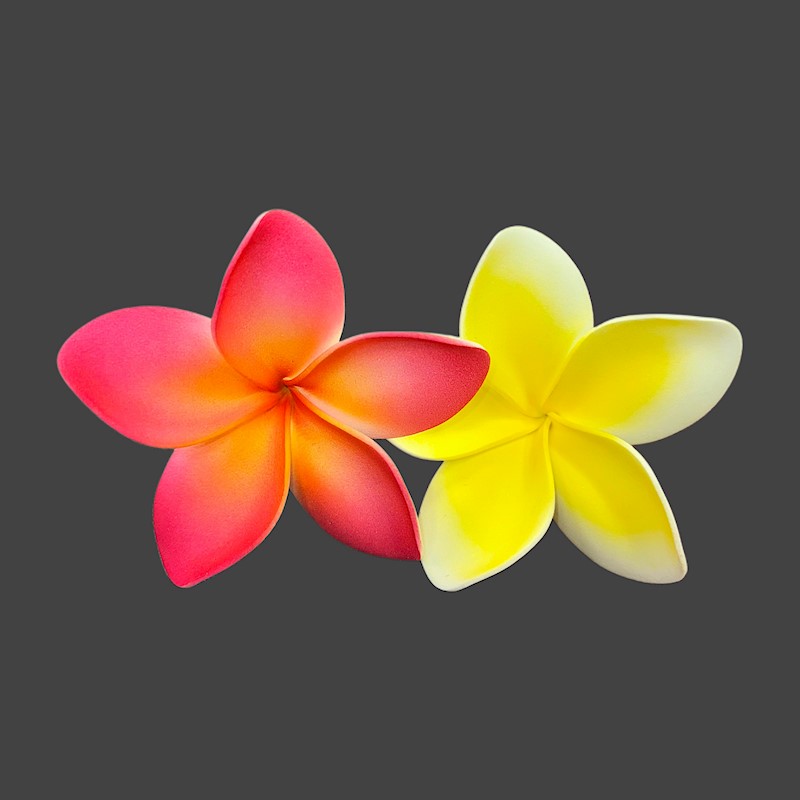 A bright, island-inspired plumeria pick featuring a ~3-inch flower and a ~3-inch stem. Available in Yellow and Sunset, each flower has smooth petals with a soft gradient—perfect for hair accessories, keiki pieces, hula adornments, décor, and tropical craft projects.