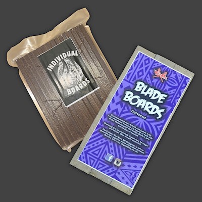 Universal replacement blade boards for the fire knife. Measurement: 1-5/16"x 9-1/2" Pack of 18 To ensure consistent availability, we have added a second supplier. Packaging may vary, but the product itself is exactly the same.
