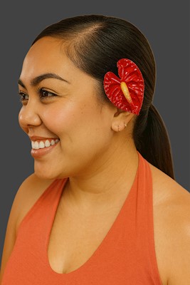 Anthurium Pick – Small (2.5”) A vibrant, glossy anthurium pick featuring a realistic heart-shaped bloom with a 4-inch stem. Offered in a variety of rich colors, these picks bring a bold tropical touch to hair accessories, arrangements, décor, and craft projects. Perfect for hula, island events, or adding a striking pop of Hawai‘i-inspired color anywhere you place them.