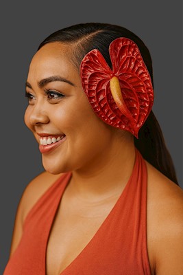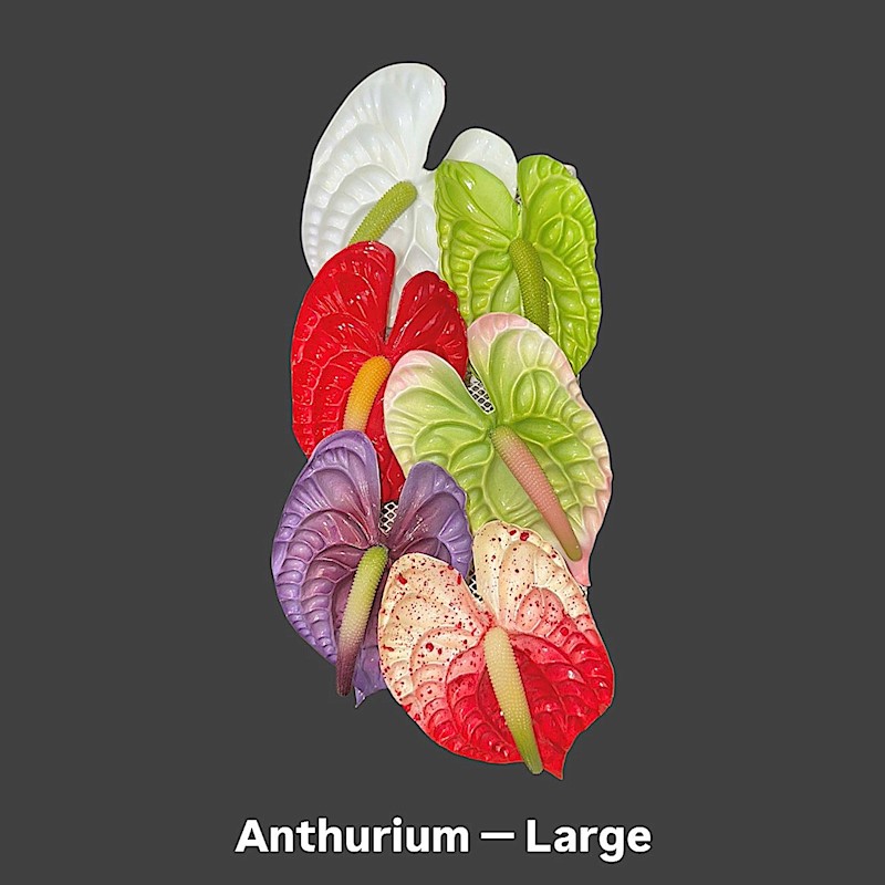 Anthurium Pick – Large (5.5”) A vibrant, glossy anthurium pick featuring a realistic heart-shaped bloom with a 4-inch stem. Offered in a variety of rich colors, these picks bring a bold tropical touch to hair accessories, arrangements, décor, and craft projects. Perfect for hula, island events, or adding a striking pop of Hawai‘i-inspired color anywhere you place them.