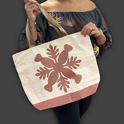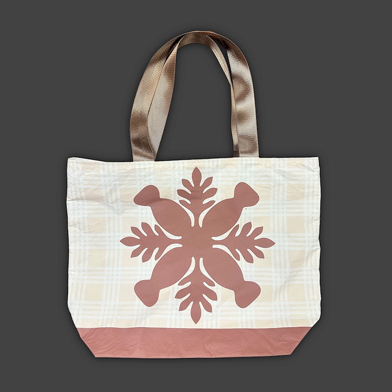 Lightweight and stylish tote bag featuring a soft neutral palaka design with an ipu heke-inspired graphic. Includes durable fabric handles and a convenient exterior zip pocket for easy access to essentials. Perfect for everyday use, errands, beach days, or travel Heke ‘Eke Dimensions — ~ 14.5” H x 18.5” L x 6” W