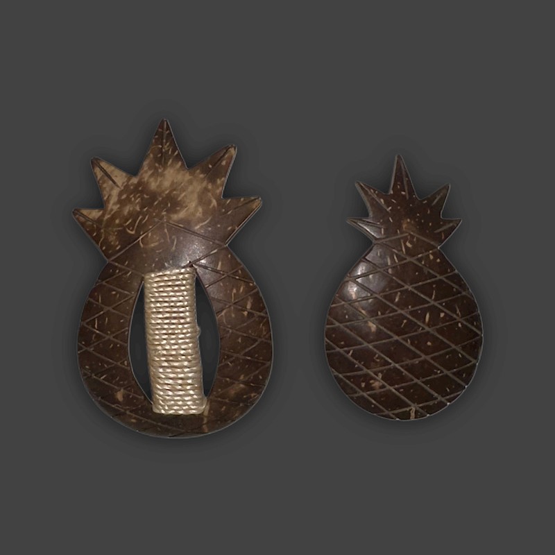 Pineapple Coconut Shells available in two sizes, Small (2.75") and Large (3.5"). All Pineapple Coconut Shells sold INDIVIDUALLY.